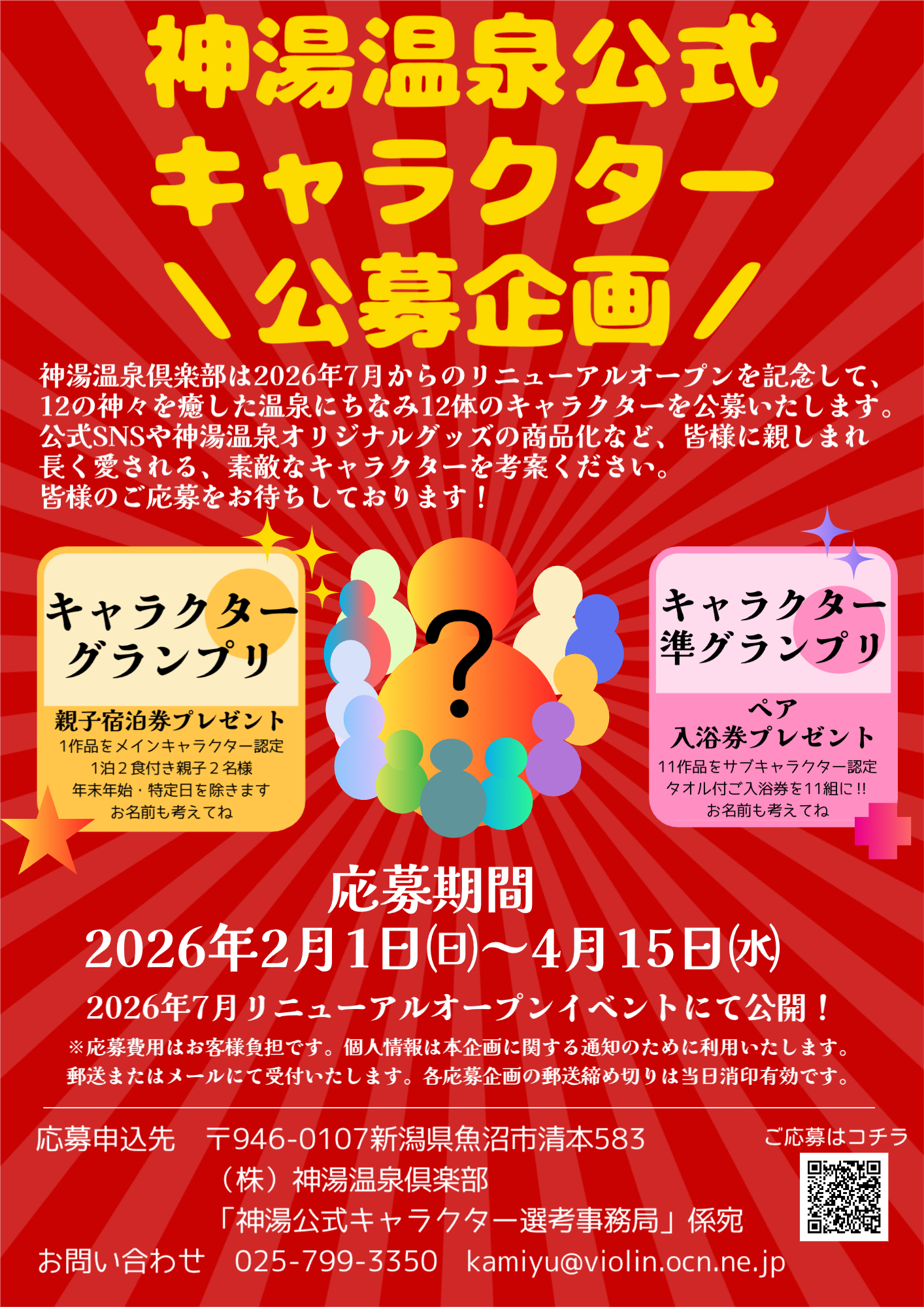 神湯温泉倶楽部公式キャラクターを公募いたします。